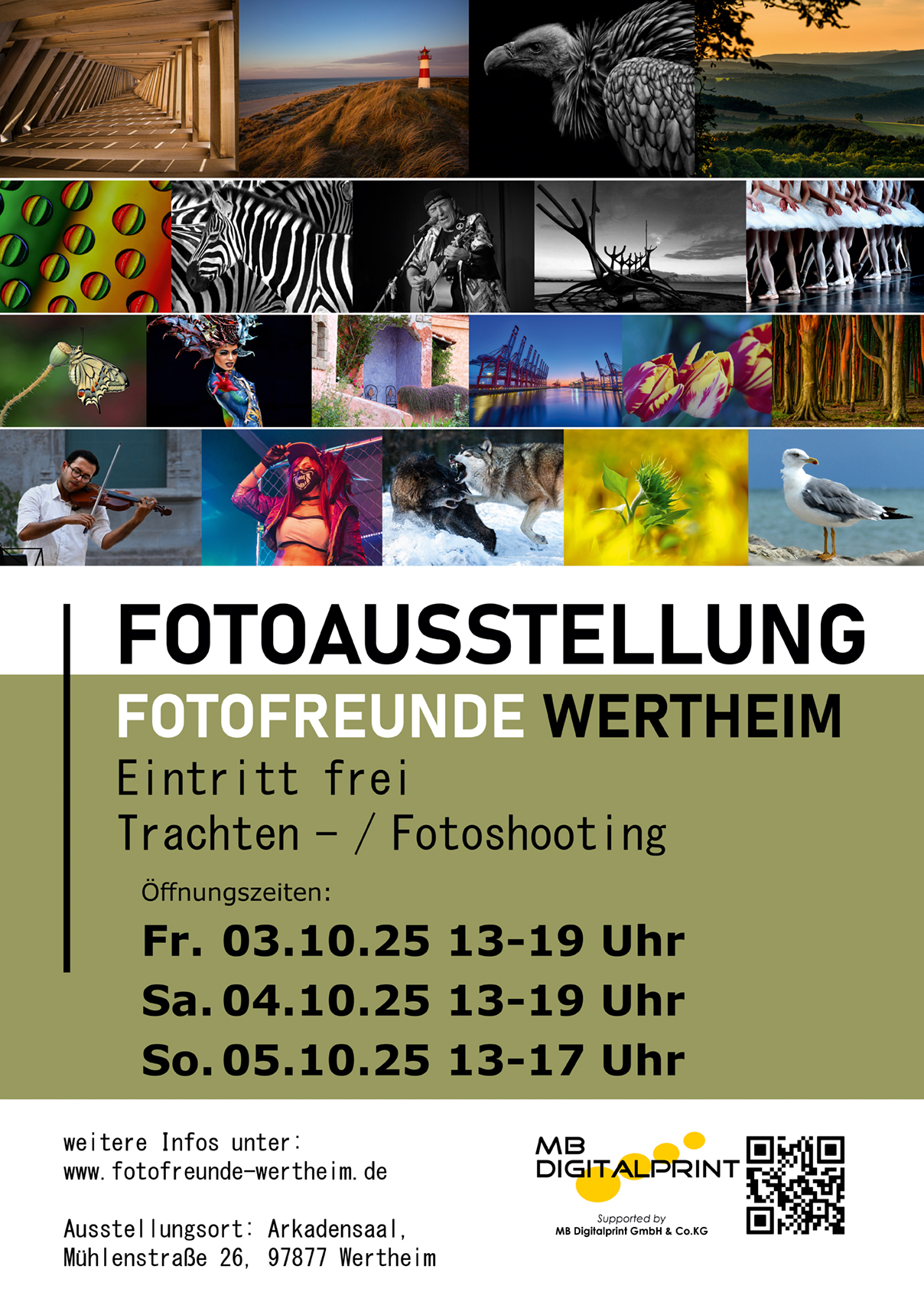 Mit dieser Ausstellung möchten wir allen Gästen die Gelegenheit geben, die Faszination der Fotografie in Wertheim hautnah zu erleben. Ob Sie schon lange Fotografie-Enthusiast sind oder einfach neugierig – wir freuen uns auf Ihren Besuch und auf viele inspirierende Begegnungen.
